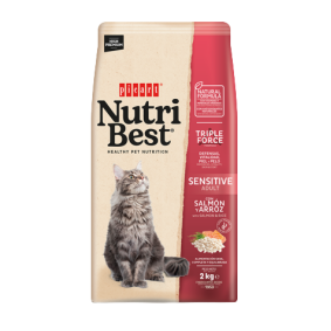Kaķu barība Nutribest Sensitive ar lasi un rīsiem 15kg