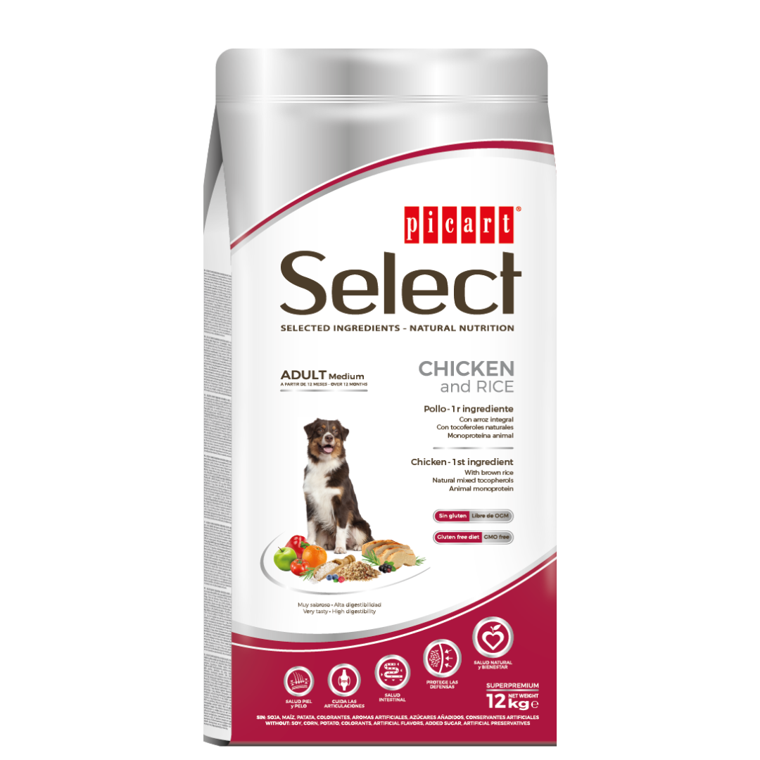Suņu barība Select vidēja izmēra pieaugušiem suņiem ar cāli un rīsiem 500g