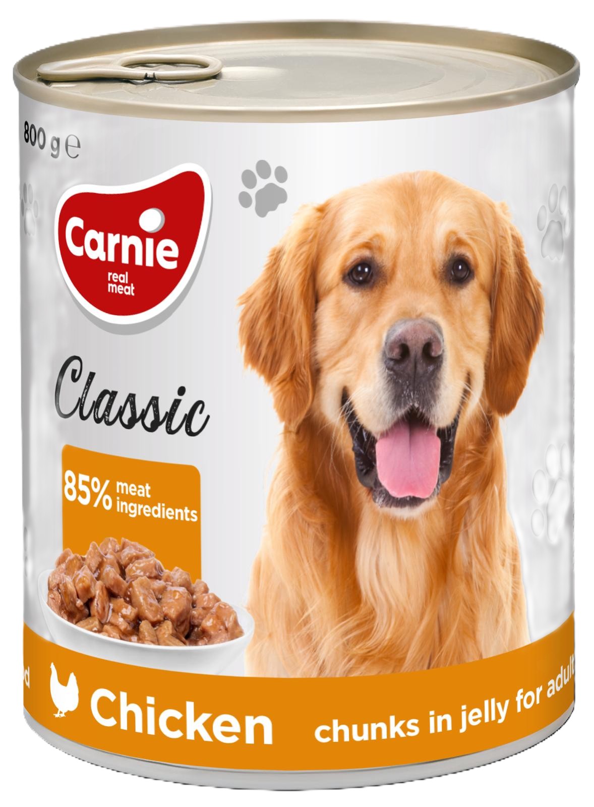 Pilnvērtīga konservēta barība pieaugušiem suņiem, kas piedāvā gardus un sulīgus vistas gaļas gabaliņus želejā. Tā satur lielu gaļas daudzumu-85%, nodrošinot pilnvērtīgu un sabalansētu uzturu jūsu suņa veselībai.
